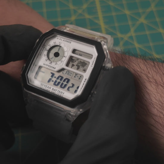 ‘Freeze’ Casio Royale is a custom build that embraces a frosted aesthetic, featuring a fully transparent case, a bespoke white faceplate, ice-blue LEDs, and a matching frost strap. This combination gives the watch a crisp, glacial look while keeping the iconic Royale spirit intact.